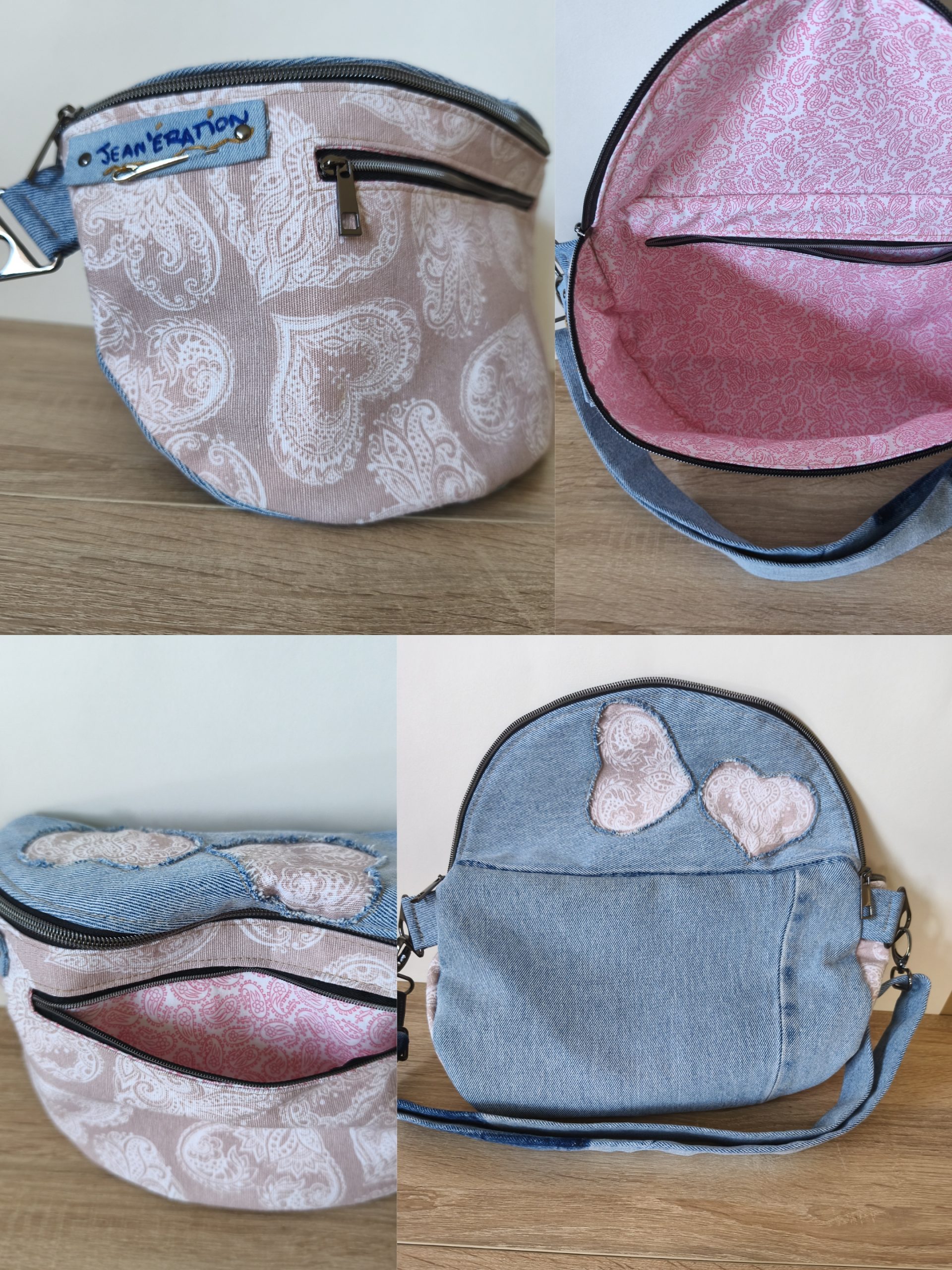 Extérieur : Jean et coton (imprimé ou non) entoilés pour une plus grande longévité du sac.